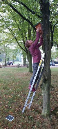 Das Ergebnis ist laut Ortmann „absolut umwerfend!“, einen solchen Erfolg hätte er nicht erwartet. Nahezu alle Nisthilfen waren belegt, ein einziger Kasten wurde verschmäht, ein weiter ist entwendet worden.