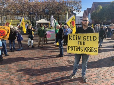 Die Demonstration richtete sich gegen den geplanten Einstieg des russischen Staatskonzerns „Rosatom“ in die in Lingen ansässige Brennelementefabrik.